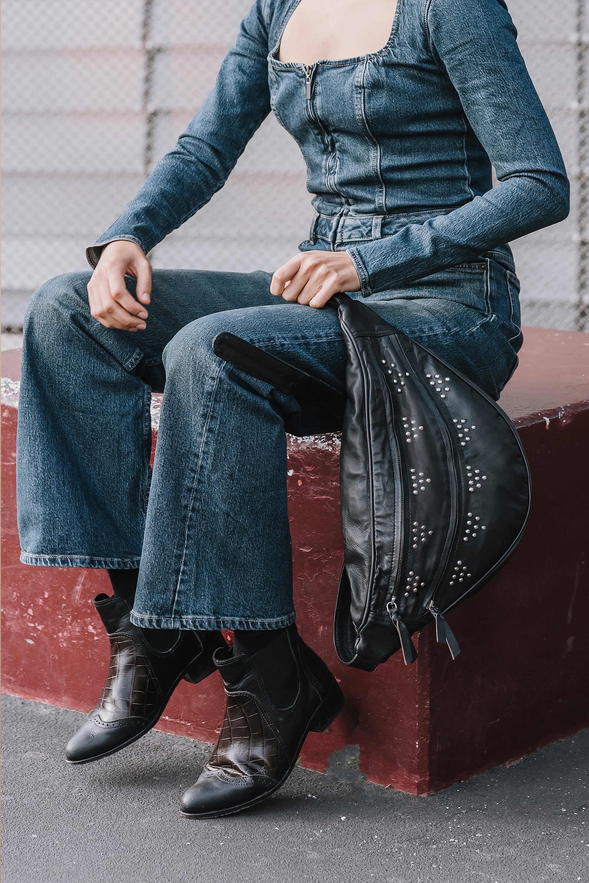 Soft slouchy leather crossbody with silver studs and an adjustable strap. Edgy, lightweight, and perfect for festivals, parties, or daily wear.